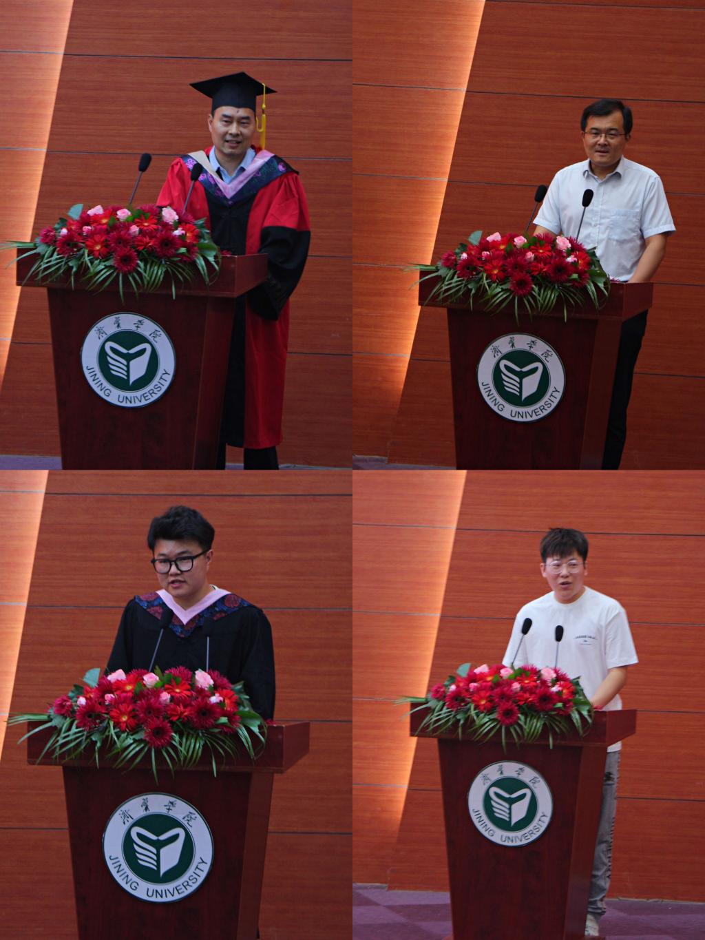 吴瑞民作为教师代表发言,向全体毕业生表示热烈的祝贺,鼓励毕业生无论顺境还是逆境,都要通过奋斗缔造闪亮人生,希望各位毕业生规划好自己的人生,树立奋斗目标,诚信做人,踏实做事,学会包容与合作,树立奉献精神,为社会做出应有的贡献。张磊作为毕业班辅导员发言,希望同学们学会感恩,感恩母校的培育和老师的辛勤付出,鼓励同学们敢想敢做、勇于担当,做到心中有信仰,脚下有力量,让学习终身相伴,永不懈怠,以蓬勃的姿态、昂扬的斗志开启人生新的征程。