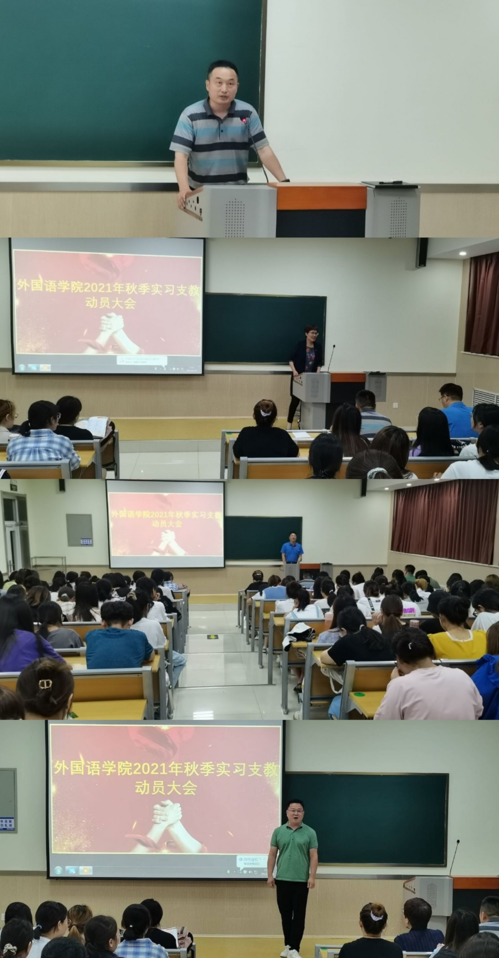 为更好地贯彻山东省师范生实习支教工作精神,落实好我院2021年秋季实习支教工作,6月30日下午,mksport登录入口在3号楼C101召开2021年秋季实习支教动员大会,该院党委书记陆波、院长杨楠、副院长张殿海、辅导员及即将参加秋季实习支教的2019级英语教育专业的153名学生参加。会议由该院党委副书记许言强主持。