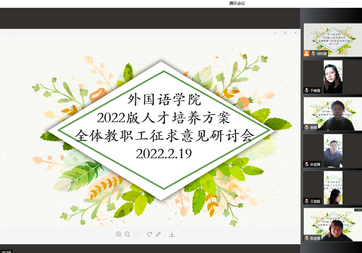 2月19日上午8点30分到12点,mksport登录入口召开2022版人才培养方案全体教职工征求意见研讨会。“雨水”时节,全体教职工相聚腾讯会议,共话育人新方案。研讨会由杨楠院长主持。