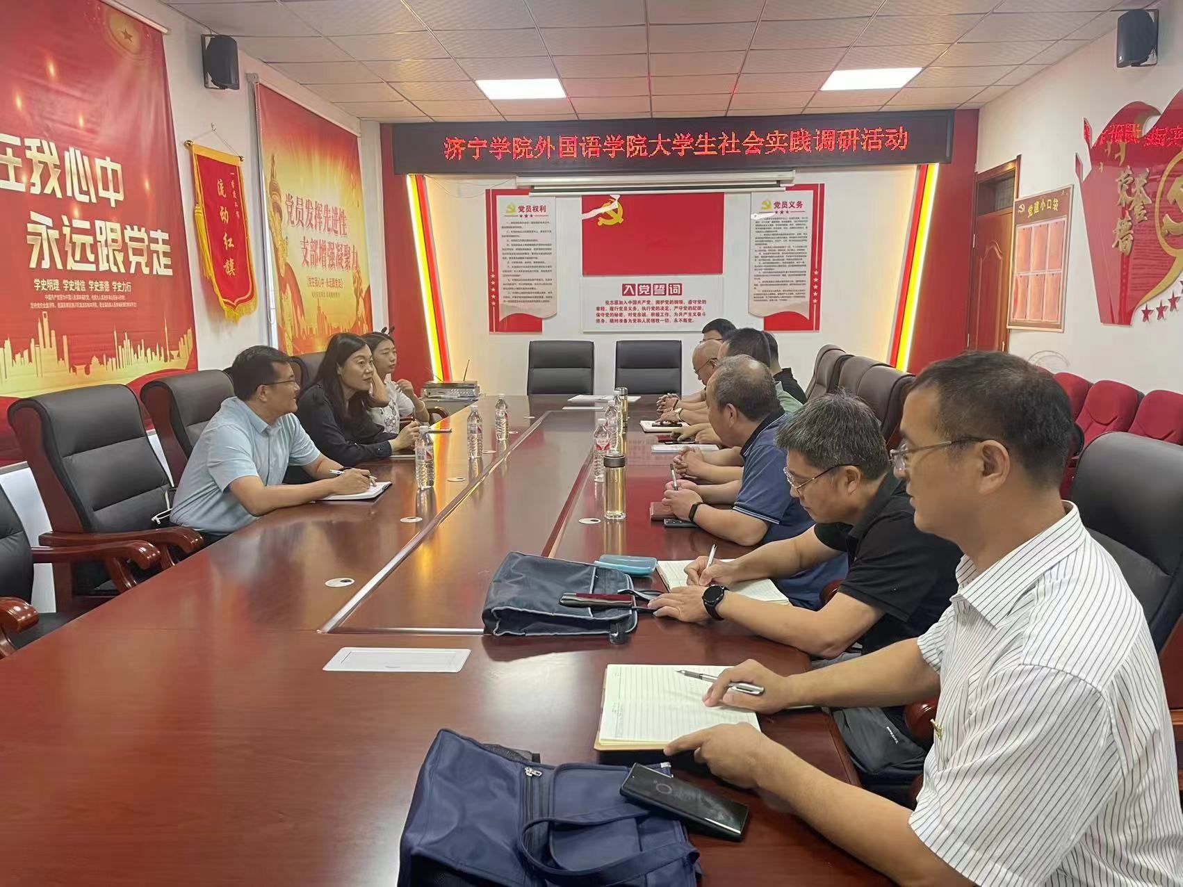 在调研过程中,文灿一行与济宁学院驻村第一书记等进行了座谈交流,详细了解农村孩子生活状态和教育需求,特别关注了农村孩子在暑期的学习和生活状况,并就如何更好地实现大学生社会实践与农村发展结合进行了深入探讨,希望能够在农村搭建锻炼学生能力、增长见识的平台,进一步服务社会、促进农村发展,将大学生所学知识与农村实际相结合,实现学以致用,学用结合。文灿表示将充分利用学院的教育资源和人才优势,支持农村教育和文化建设,为乡村振兴战略贡献力量。文灿一行还参观了黑虎庙镇河西廉政教育基地,了解当地红色文化和廉政教育资源,探讨了党支部共建事宜。