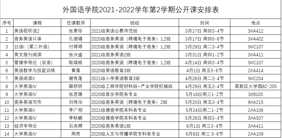 2021-2022学年第2学期mksport登录入口听课安排表