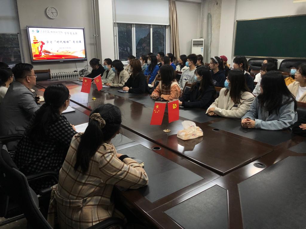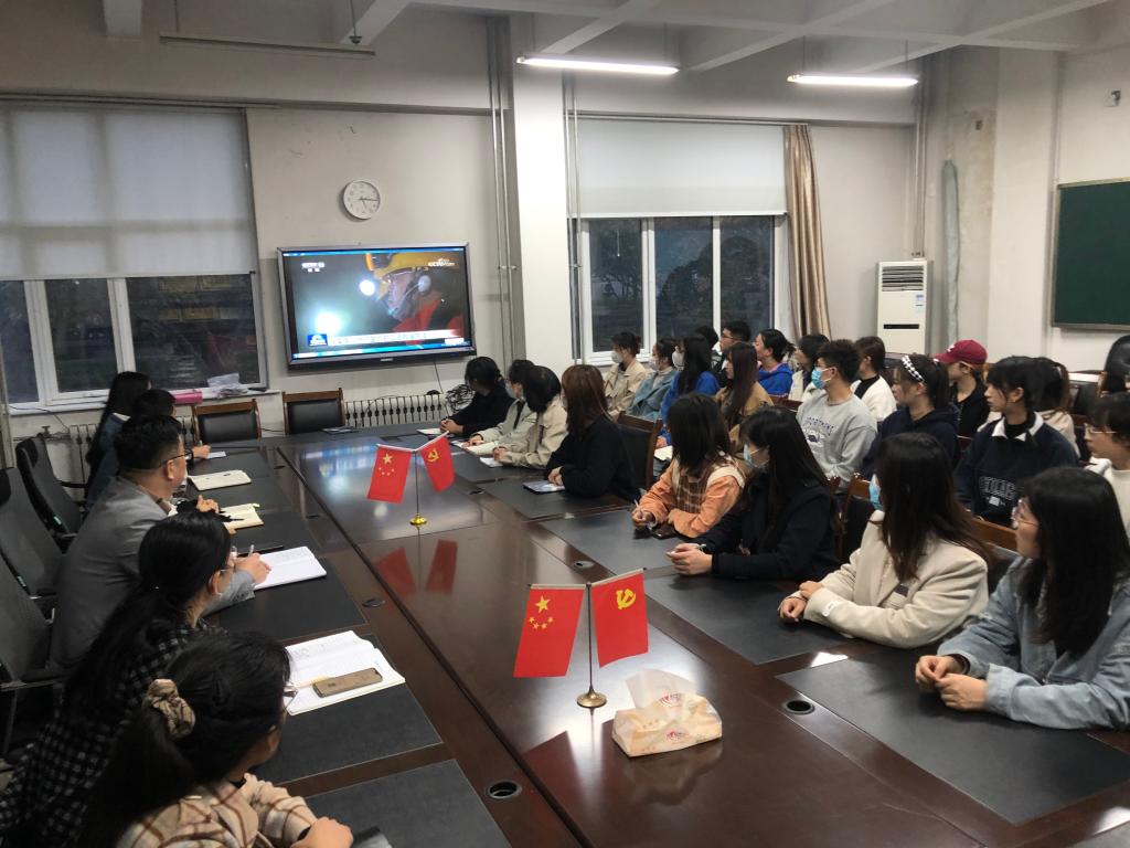 11月3日下午,mksport登录入口学生党支部全体党员在一楼会议室学习“时代楷模” 肖文儒的先进事迹。