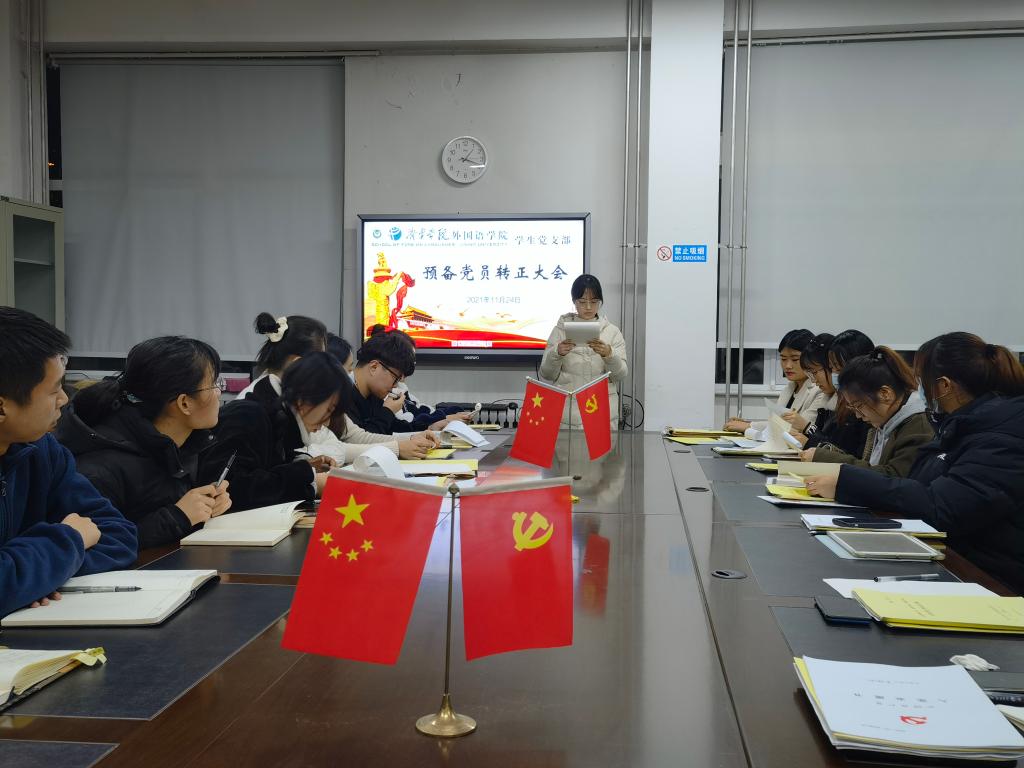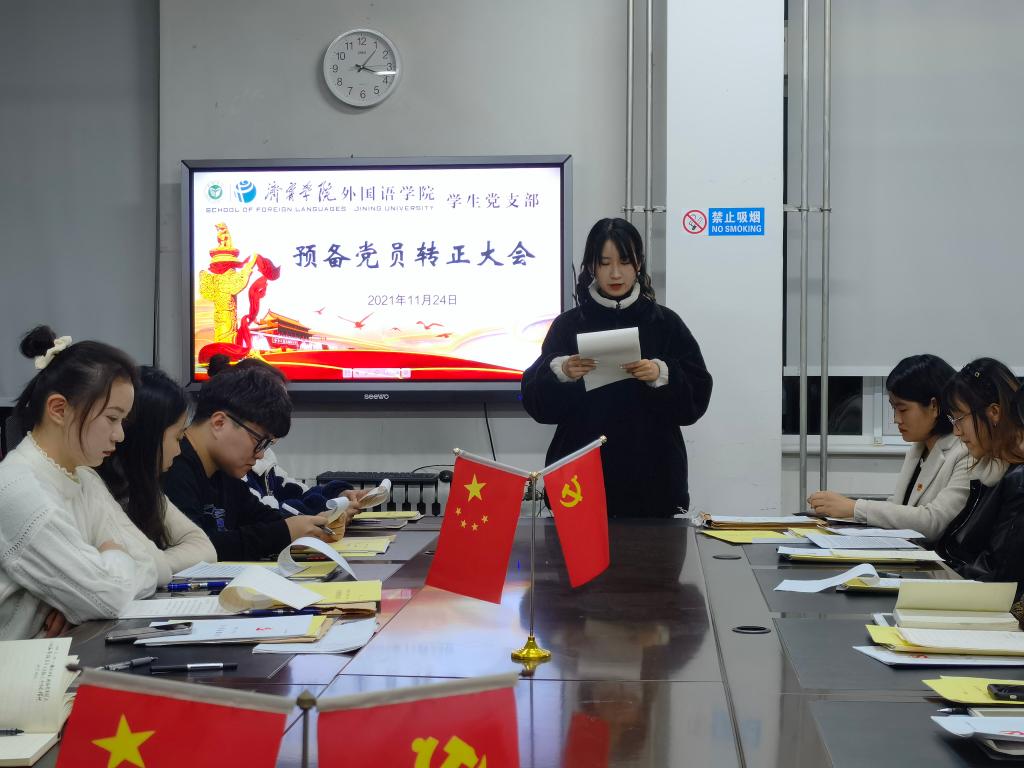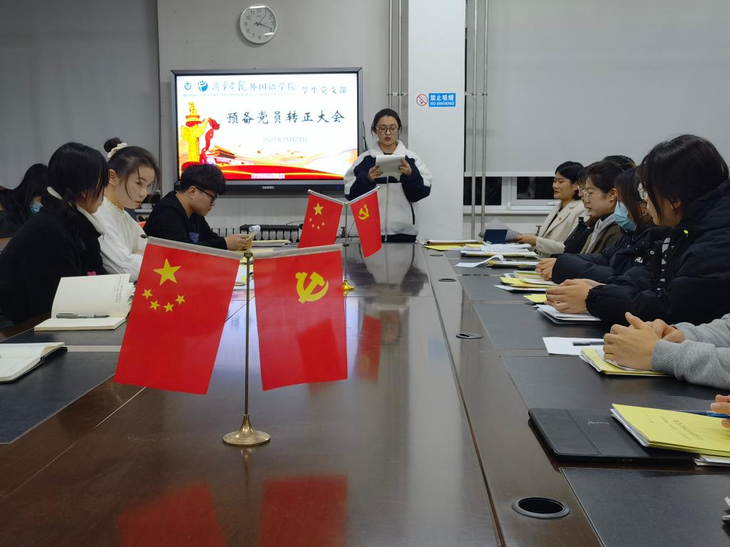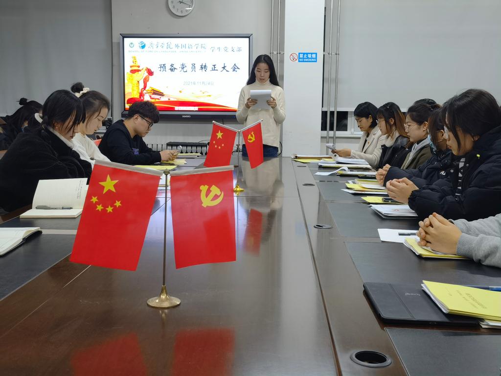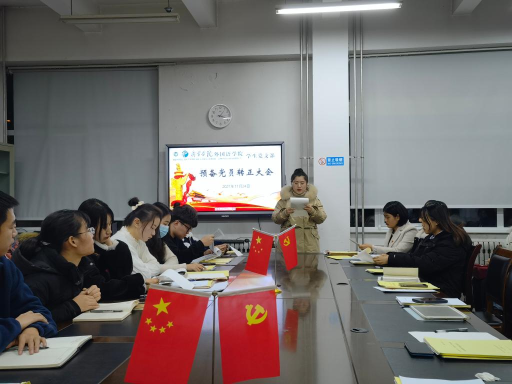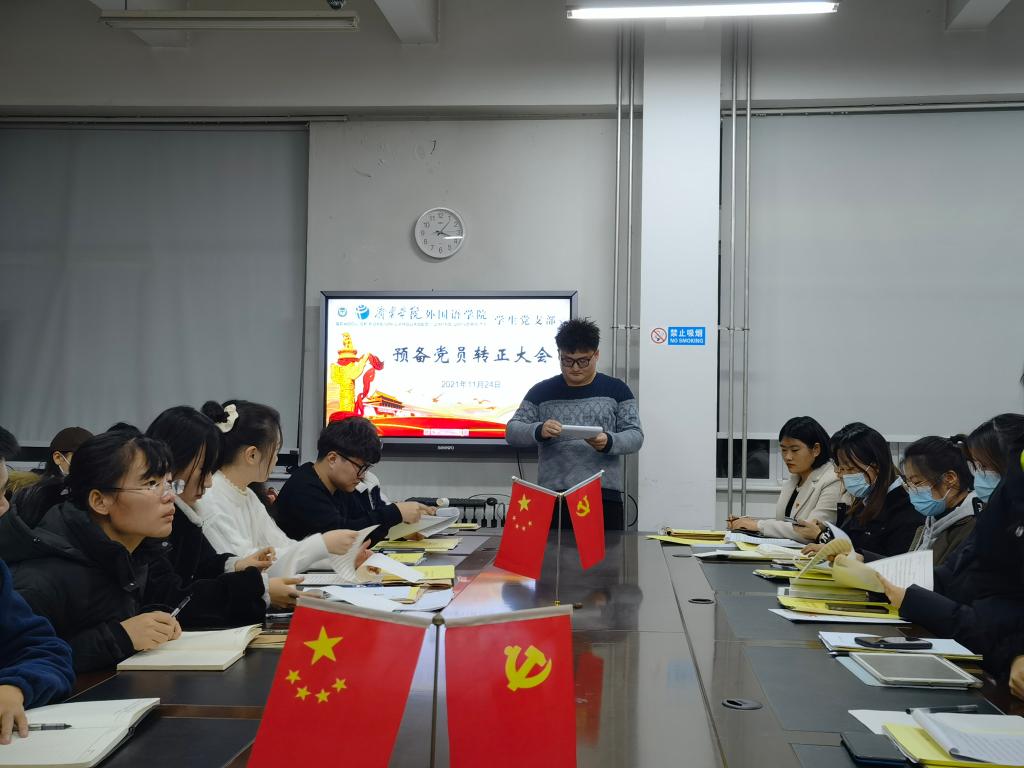 2021年11月24日下午,mksport登录入口学生党支部于3号楼一楼会议室召开预备党员转正大会。会议由学生党支部书记姜璨主持,mksport登录入口学生党支部全体党员参加。
