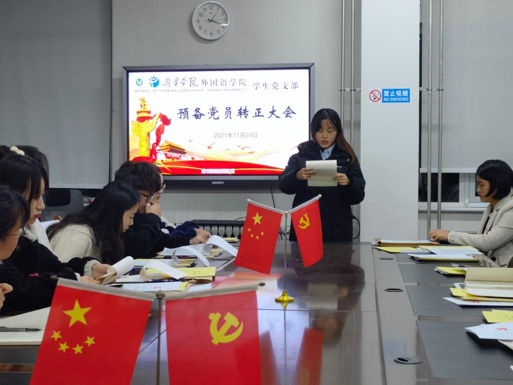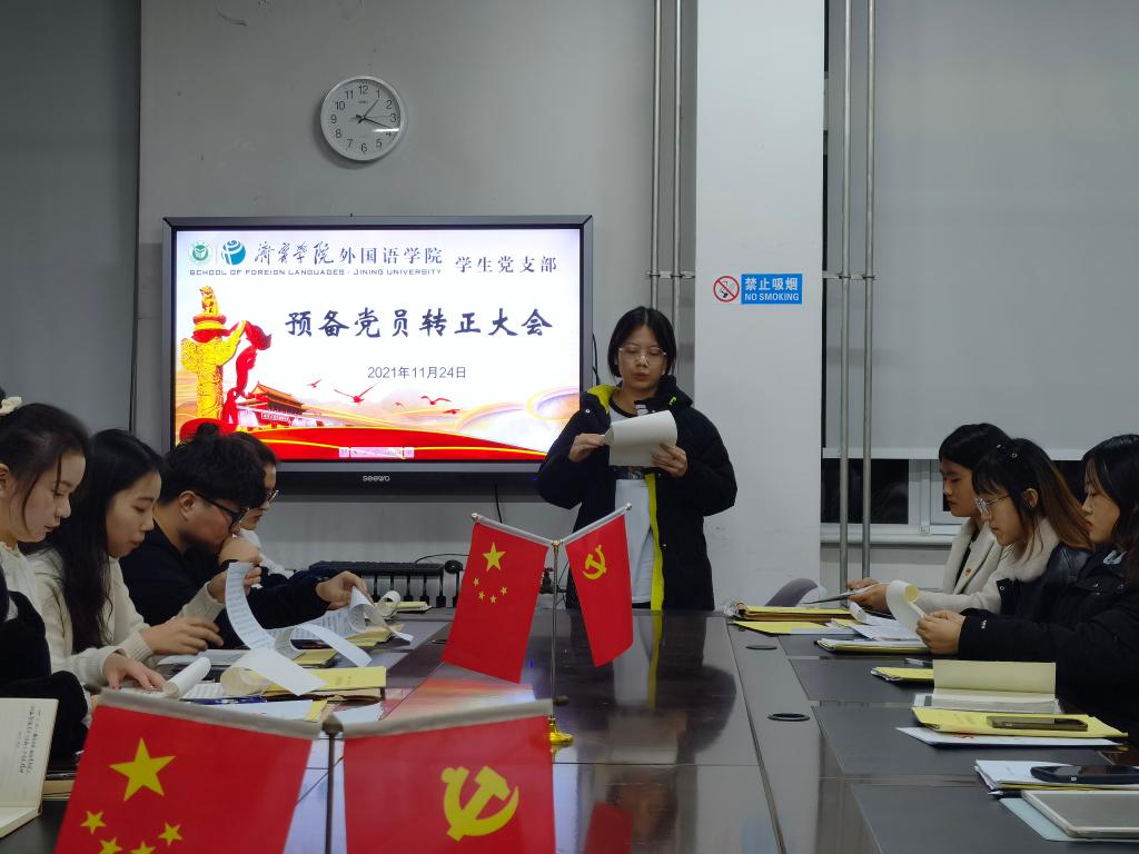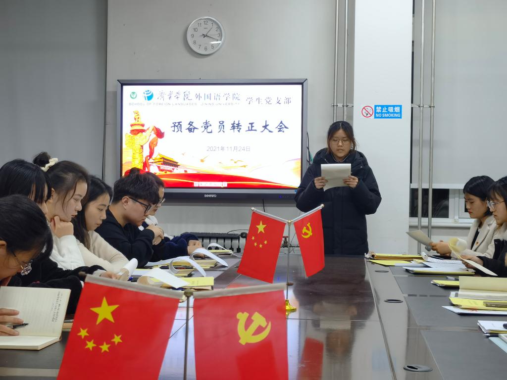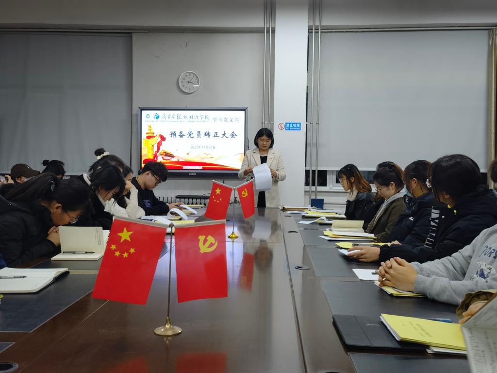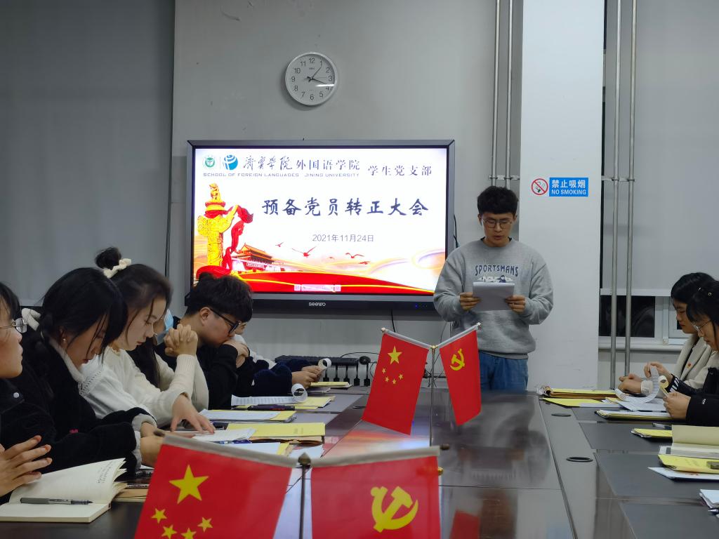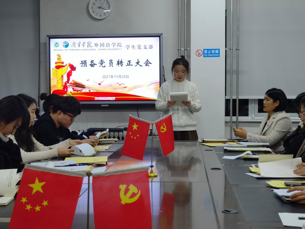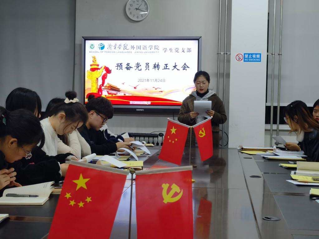 2021年11月24日下午,mksport登录入口学生党支部于3号楼一楼会议室召开预备党员转正大会。会议由学生党支部书记姜璨主持,mksport登录入口学生党支部全体党员参加。