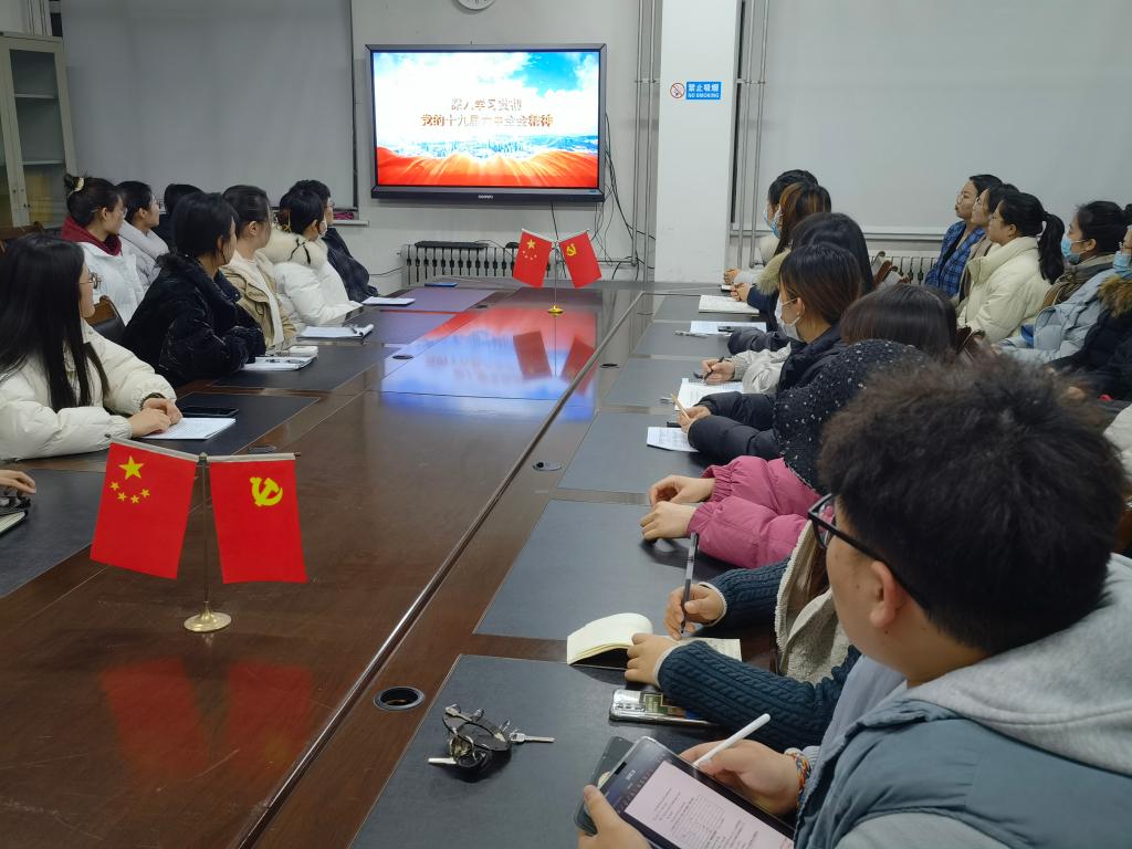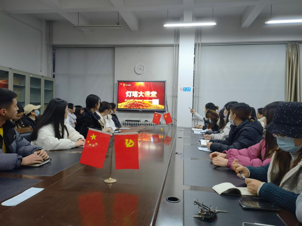 2021年12月22日,mksport登录入口学生党支部在一楼会议室集中学习“灯塔大课堂”第二十六课《“两个确立”的依据和决定性意义》主题课程。