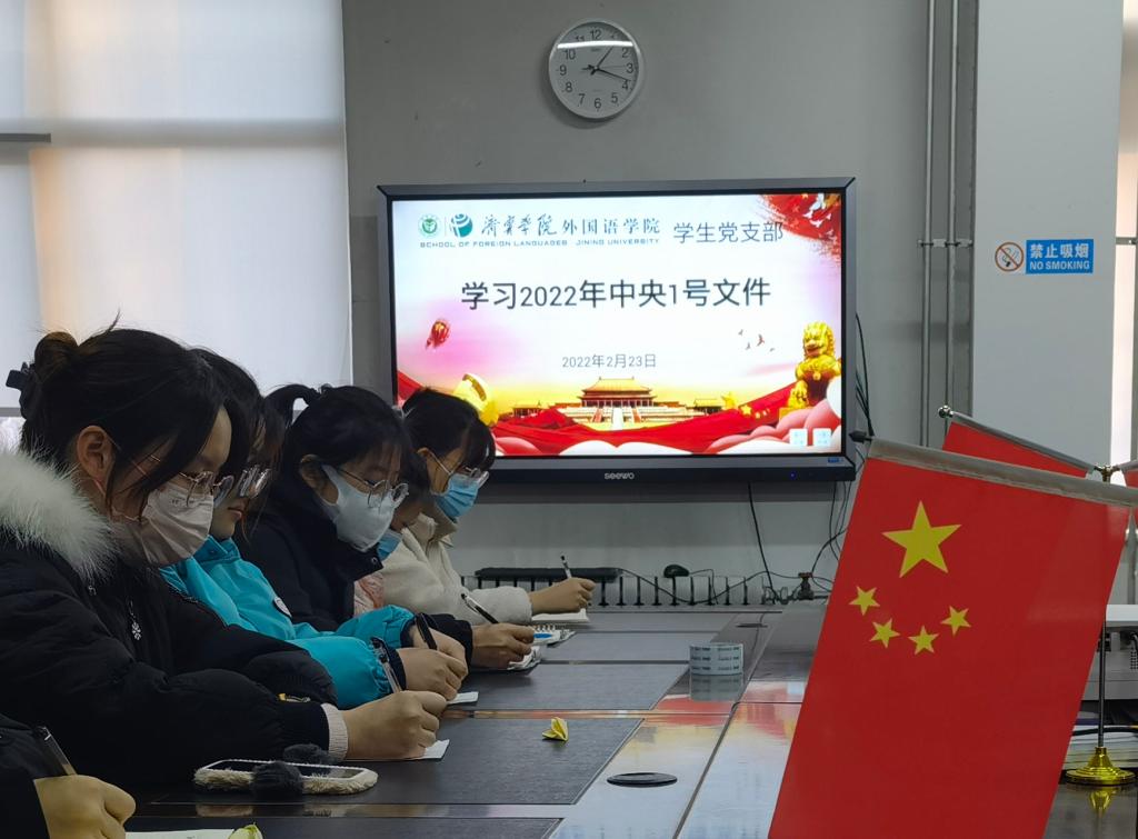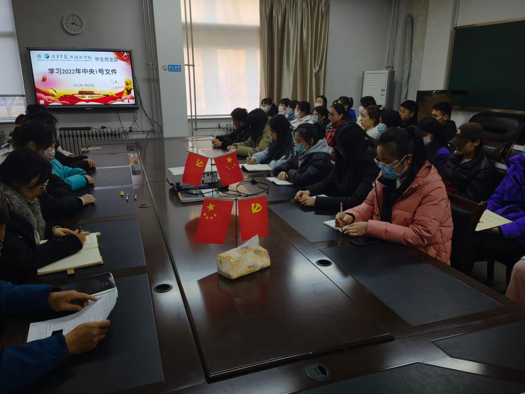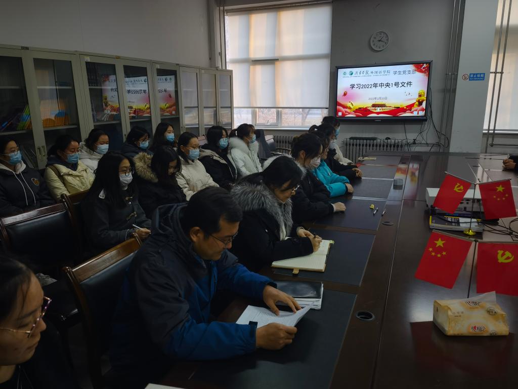 2月23日下午,mksport登录入口学生党支部在一楼会议室集中学习2022年中央一号文件,学生党支部书记姜璨主持,全体辅导员及学生党员参加。