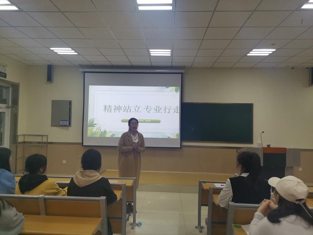 2023年4月12日晚,mksport登录入口邀请曲阜东方学校德育部主任杜冉冉老师在3号楼C101作了题为“精神站立 专业行走 ”的讲座。讲座由姜璨老师主持,曲阜东方学校副校长杜放,部分教师代表,2021级、2022级本专科英语师范专业学生参加了此次活动。