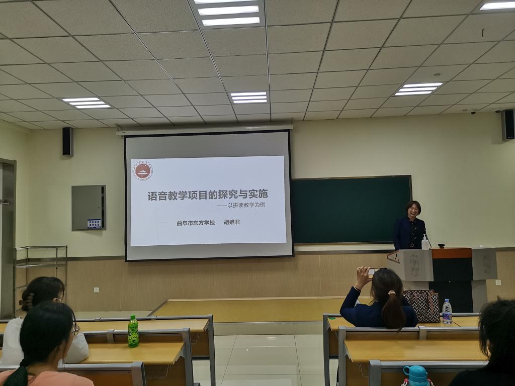 4月20日晚,mksport登录入口邀请曲阜市东方学校英语学科主任胡婉君老师在3号楼C101作了题为“语音教学项目的探究与实施 ”的讲座。讲座由mksport登录入口党委副书记文灿主持,曲阜市东方学校德育部主任杜冉冉,部分教师代表,2021级、2022级本专科英语师范专业学生参加了此次活动。