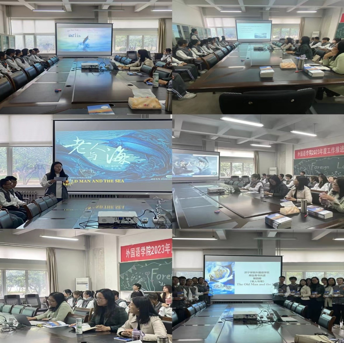 4月21日下午,在世界读书日即将来临之际,mksport登录入口第四期“师生有书共读”活动在3号楼会议室举行。mksport登录入口语言、文化与翻译教研室承办本次读书活动,教研室教师代表、各专业学生代表30余人参加了本次读书分享会,师生共读美国小说家海明威的经典名著《老人与海》。