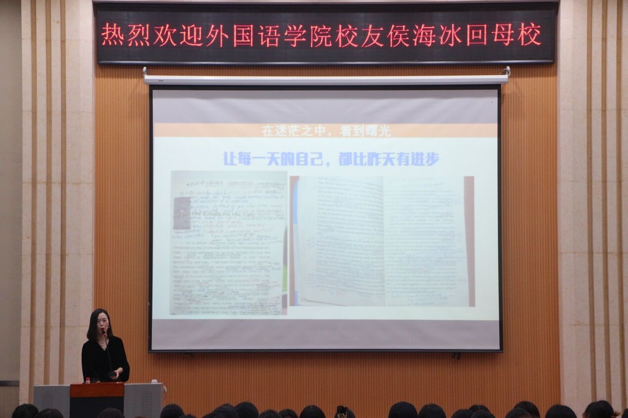 如若不展风云志,空负意气少年时。侯海冰校友刻苦的学习经历使同学们颇受感染,让同学们明确了自身的奋斗目标,坚定了学业规划的方向,掌握了高效的英语自主学习方法。