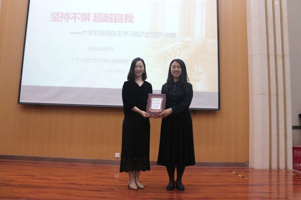 报告会上,校友侯海冰从“我的漫漫英语路”和“英语学习经验分享”两方面娓娓道来。侯海冰讲述了自己的求学之路,是老师的鼓励肯定、夜以继日的勤奋和迎难而上的勇气使自己在迷茫中看到曙光,让同学们明白了“在积累中沉淀、在奋斗中收获”的道理。她讲解了自己曾赴美国卫斯理安大学、德国哥廷根应用技术大学、英国雷丁大学做访问学者的经历,使同学们坚定了“越努力、越幸运”的信念,拓宽了同学们学业提升的渠道。侯海冰从英语自主学习能力入手,分享了自己练习英语听力、口语、阅读的技巧和方法,并在利用中文译本提升英文阅读与写作方面为同学们现场示范,细致指导。