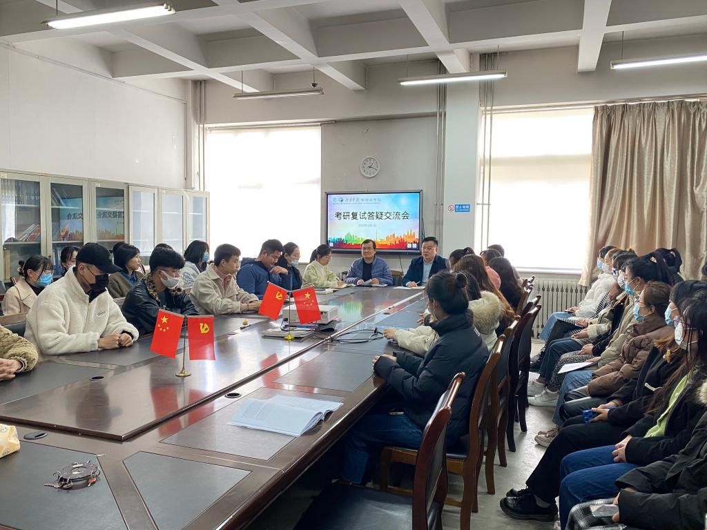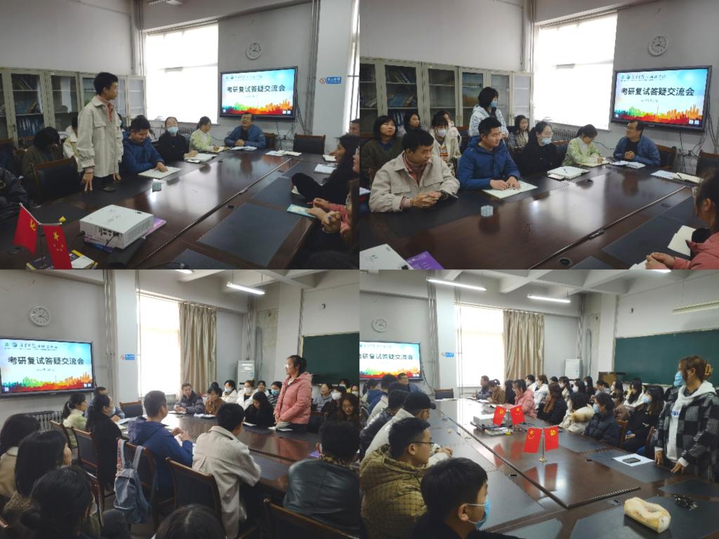 会上,其他老师分别分享了各自积累的关于考研复试的经验,让同学们更有针对性地投入到复试准备中去,同时,也祝愿所有考研同学都能取得成功。在交流答疑环节,与会老师针对学生现阶段复试备战中遇到的各种问题和疑惑进行了耐心细致地解答。