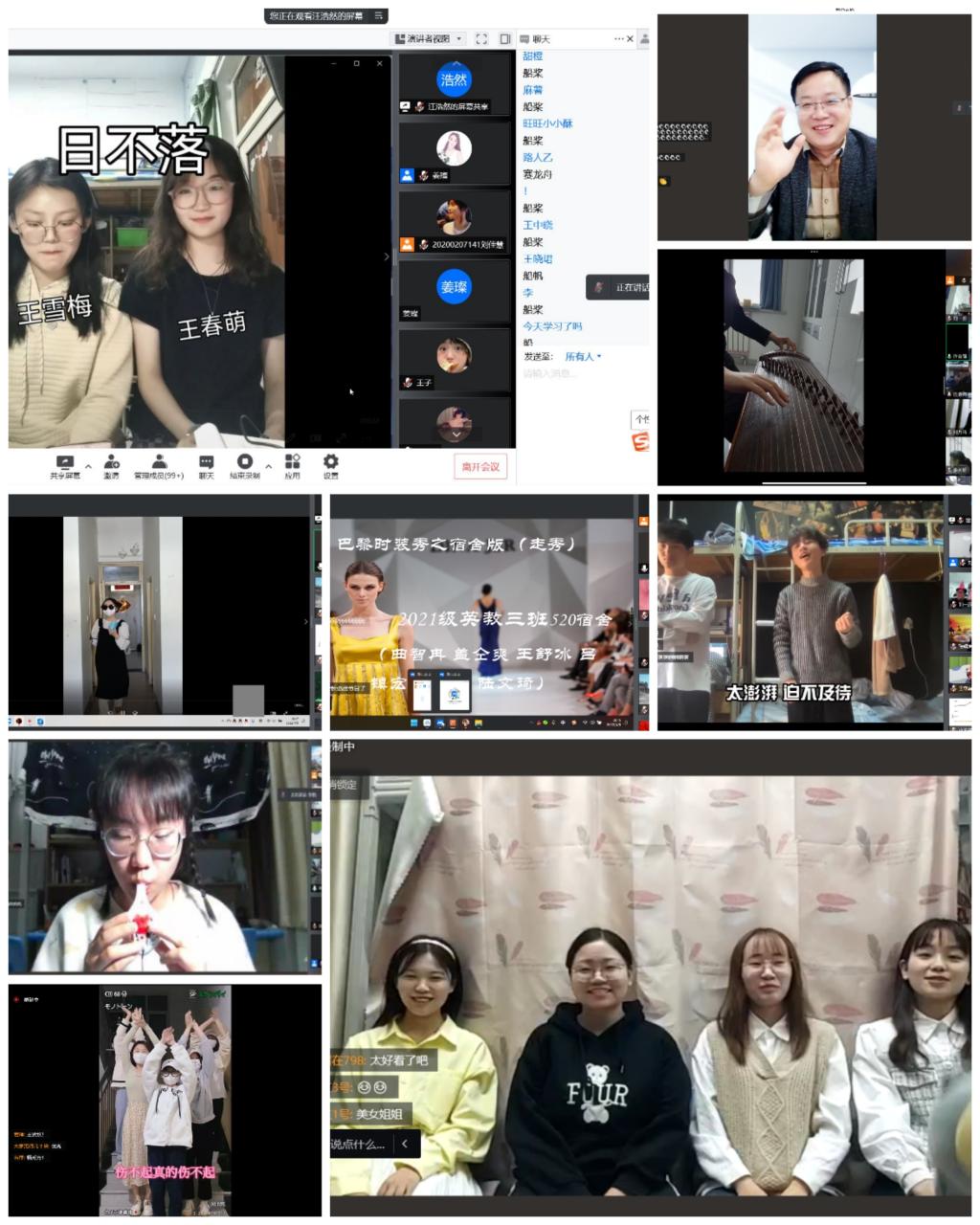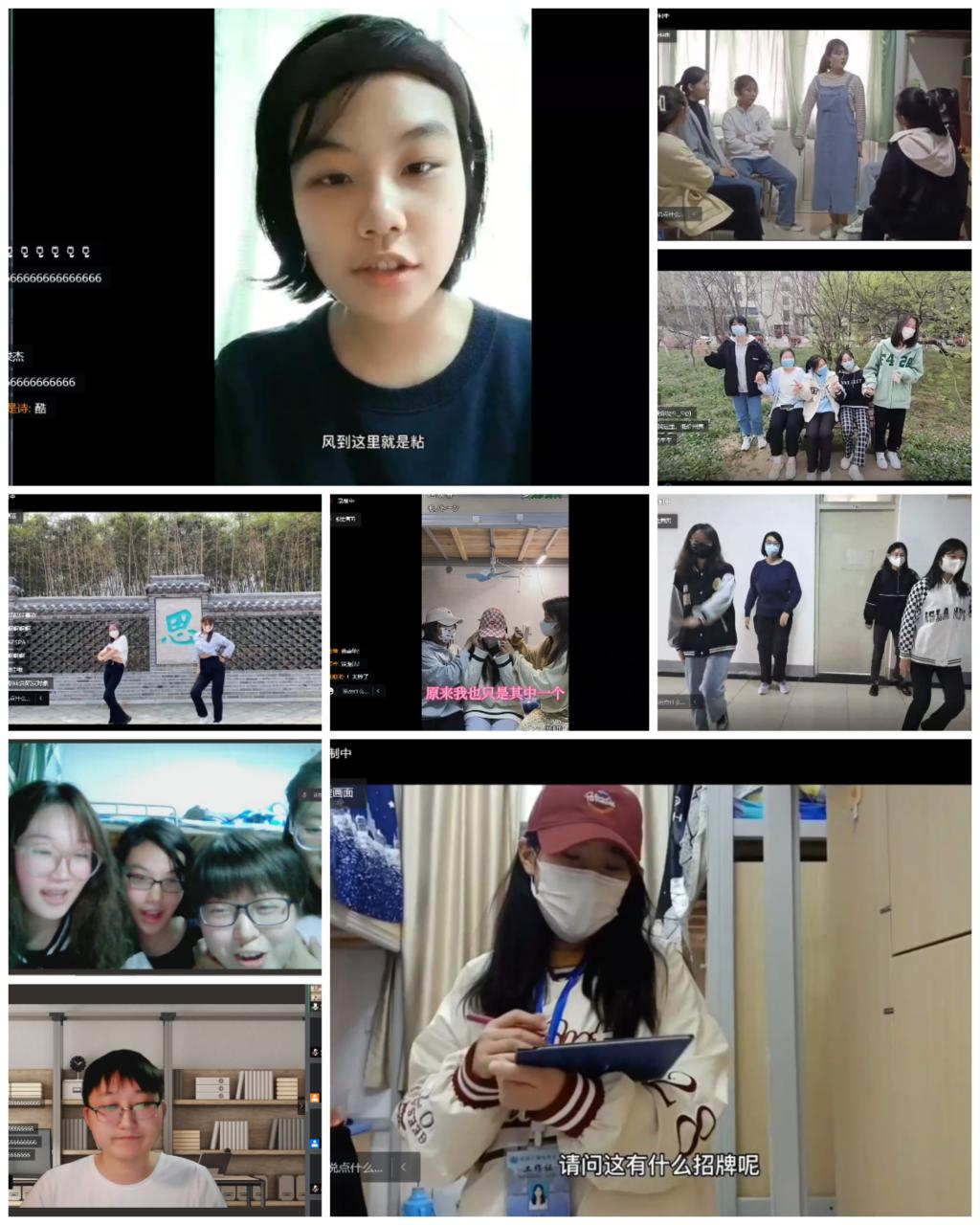 配音秀《冰雪奇缘》展现了学生扎实的英语专业功底,防疫恰恰舞提醒同学们戴口罩、勤洗手、少聚集、勤通风。美妙的歌声、优美的舞蹈,同学们积极参与,虽然节目编排时间短暂,但丝毫不影响节目效果,宿舍的小伙伴们分工明确,团结协作,乐在其中。在活动的互动环节“你画我猜”、“听歌识曲”中,同学们踊跃参加,争先恐后,其乐融融。