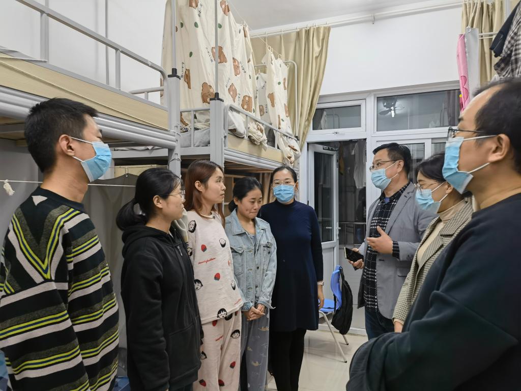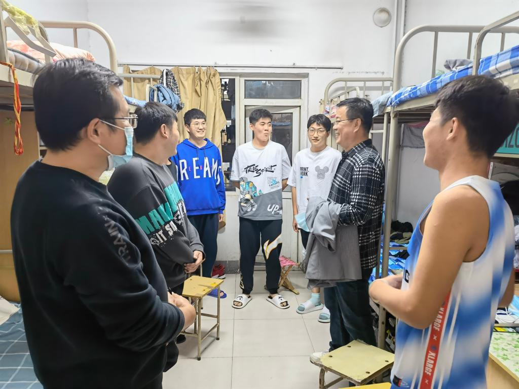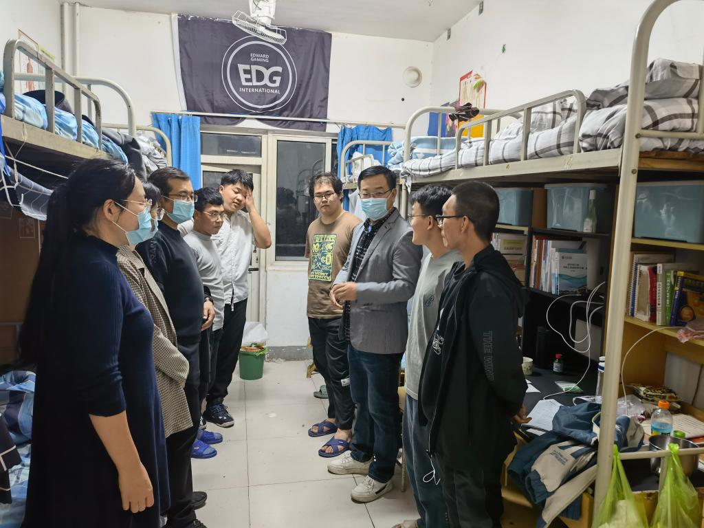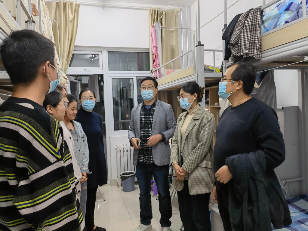 走访过程中,领导和老师们主要围绕同学们的生活学习状态、宿舍安全和卫生、疫情防控等展开。一是详细了解同学们近期的学习和生活情况,告诫大家要避免 “躺平”的不良态度,从思想状态、身心健康、人际关系等角度开展了集体和个别谈话,将谈话地点从办公室转移到宿舍,耐心听取并积极解决同学们的诉求,真正实现急学生之所急、想学生之所想。二是仔细检查了宿舍卫生和安全情况,对于地面打扫、个人用品摆放等进行了再强调,并着重排查安全隐患,希望大家安全用电、节约用电,共同维护绿色校园建设。三是细心叮嘱同学们遵守学校的疫情防护规定,感谢同学们对于学校政策的理解和配合,指出疫情防控关系你我每一个人,切不可马虎大意。同时,要理性对待网络上的不当言论,做谣言的终止者、澄清者和真相的还原者、维护者,不断提升身为济园学子的担当。