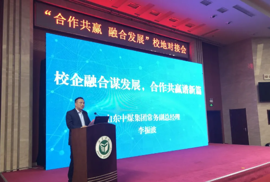 10月22日下午,济宁学院“合作共赢 融合发展”校地对接会在科技文化大楼学术报告厅隆重举行。作为济宁学院首批“双师型”教师培养培训基地、济宁学院校企合作单位的中煤集团应邀参会,中煤集团常务副总经理李振波出席大会并作报告。