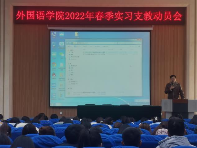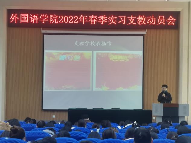 2021年12月30日上午,mksport登录入口2022年春季实习支教工作动员大会在3号楼报告厅召开。mksport登录入口党委副书记许言强、指导教师代表吴瑞民、闫彩霞、辅导员姜璨出席会议,2019级英语(公费师范)、2021级英语(师范专升本)全体学生参加本次会议。