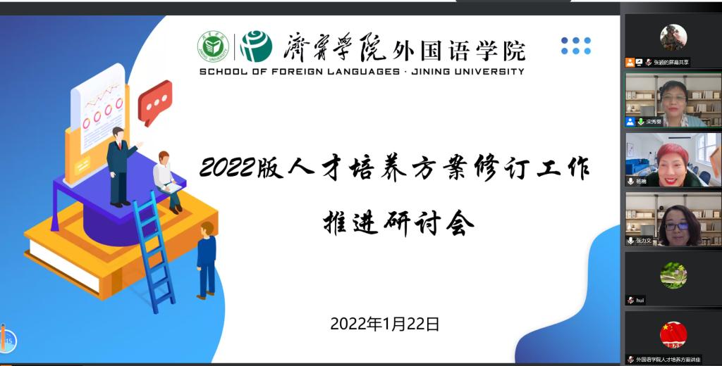 1月22日晚上7:00-10:30,mksport登录入口2022版人才培养方案修订工作推进研讨会通过腾讯会议顺利举行。齐鲁师范学院mksport登录入口院长、教授宋秀葵,齐鲁师范学院mksport登录入口副教授、英语教育教研室主任张力文应邀参加此次研讨会。研讨会由mksport登录入口院长杨楠教授主持,我院2022版人才培养方案修订工作领导小组核心成员及全院教师参加了此次线上分享和讨论。