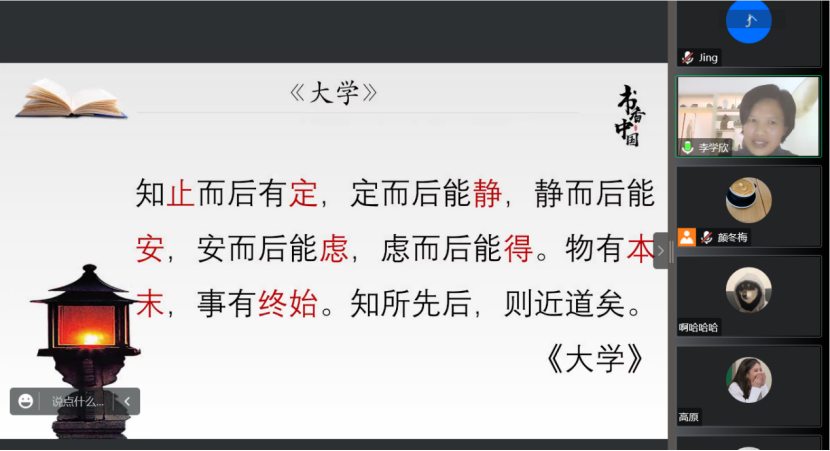 整个讲座中,李老师和蔼可亲、引经据典、娓娓道来,既有对儒家经典思想的深入解读,又有对儒家人物的生动分析,真正做到了对儒学的融会贯通。本次讲座不仅给外院师生带来了一堂生动的国学课,更是带来了一场思政盛宴。让外院师生深刻感受到中国优秀传统文化的博大精深、以及儒学对当代中国人的思想启迪和价值引领。外院学生纷纷表示:作为外语人,一定要学好外语,讲好我们中国的故事,让儒家思想的光芒照耀世界。