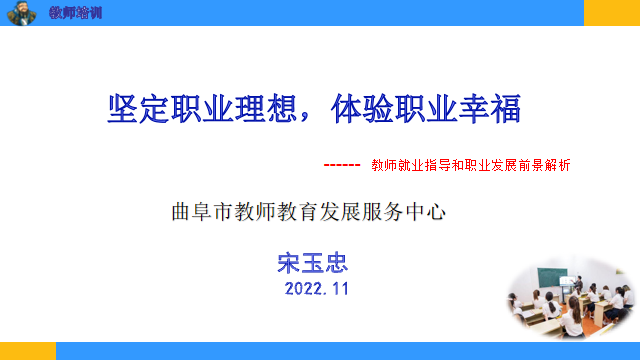 11月22日晚上曲阜市教育局教师教育中心初中英语教研员宋玉忠做了题为“坚定职业信念,体验职业幸福----教师就业指导和职业发展前景解析”的讲座。宋老师从教师职业认同、职业了解、教师职业规划、实现职业人生四个方面详细讲解了教师职业的重要意义和新时代对教师工作提出的新要求,回答了为什么成为教师、如何成为教师以及怎样成为卓越教师等一系列问题;宋老师结合个人成长经历、自己教师专业发展过程以及在教育教学中培养学生的成功案例,给同学们分享了很多有关教育、英语教学、班主任管理等方面的宝贵经验,并在在读书、英语学习平台和网站等方面给予同学们许多建议。