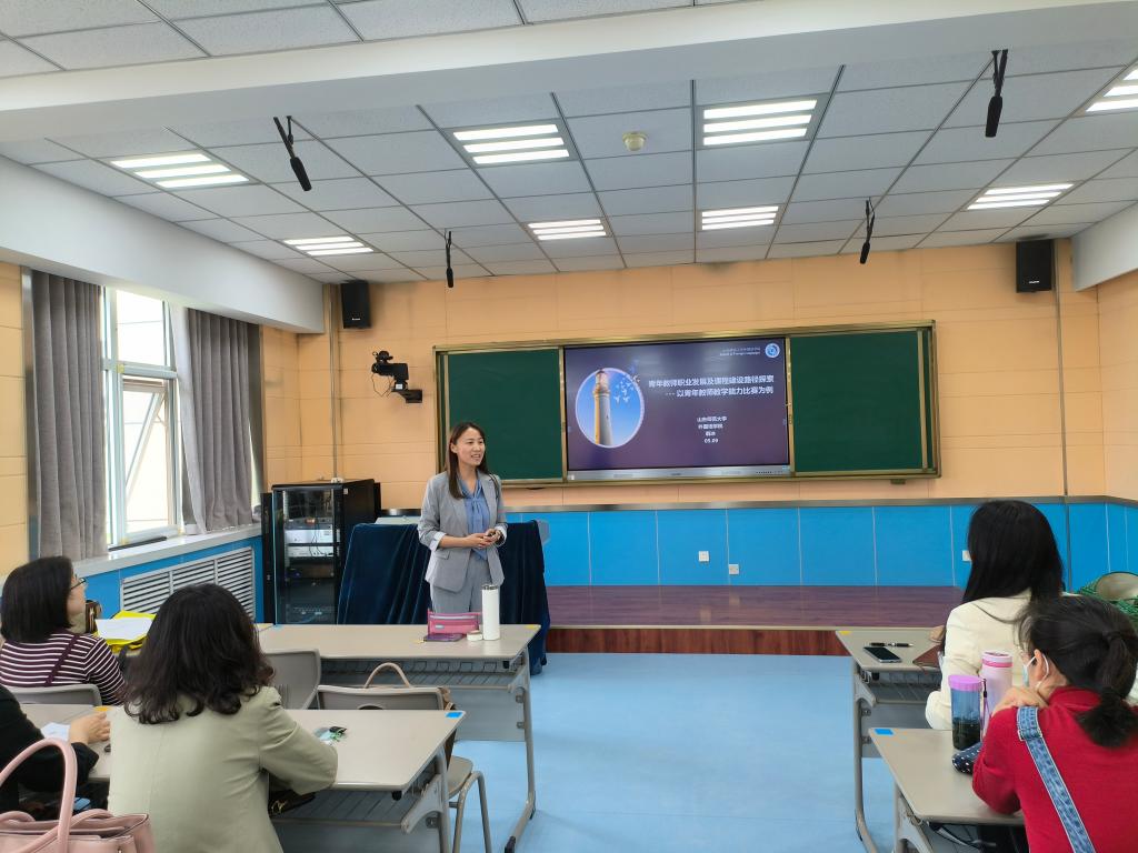 5月,阳光不燥,微风正好。9日下午,mksport登录入口在3号楼A502室举办教师发展沙龙第七期活动,邀请山东师范大学韩冰副教授作题为“青年教师职业发展及课程建设路径探索—以青年教师教学能力比赛为例”的学术报告,副院长张颖、办公室主任闫彩霞、教学秘书栾珍、院长助理刘暖及骨干教师参加。本次活动由张颖主持。