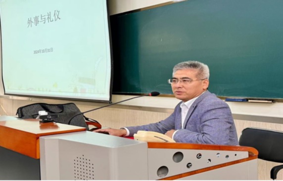 为进一步提升学生的综合能力素质,增强运用外语专业知识传播好中国声音的能力,10月31日下午,mksport登录入口邀请了济宁市人民对外友好协会办公室高建军副主任作题为“外事及礼仪”专题讲座,讲座由学院党委副书记文灿主持,2024级全体新生参加本次讲座。