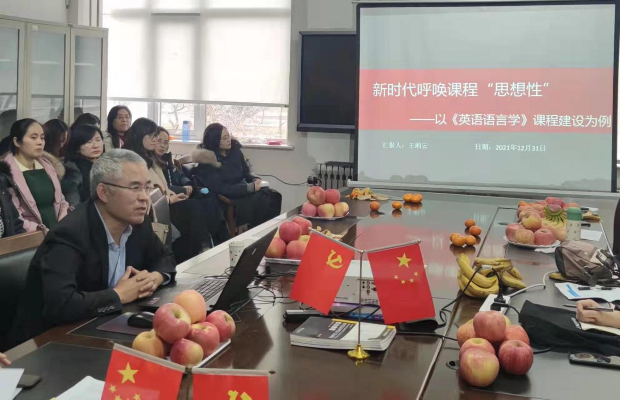 12月31日下午,mksport登录入口教师专业发展沙龙第四期在3号楼A110会议室顺利举办。恰值岁末,mksport登录入口藉此次活动举办了建院以来的第一次教师联欢会。与会教师纷纷通过诗歌朗诵、歌曲弹唱等才艺形式表达了对于mksport登录入口这一成长共同体的期许,也传递了在进入新时代后对mksport登录入口学科专业及个人发展的良愿。之后,在窗外冬意盛、窗内暖意浓的氛围中,山东大学王湘云教授应邀为全院教师做了题为“新时代呼唤课程思政性——以《英语语言学》课程建设为例”的学术讲座,并就新文科建设、学术研究和教师发展等话题与部分骨干和青年教师进行了深入交流。本次讲座与座谈由mksport登录入口院长杨楠教授主持。