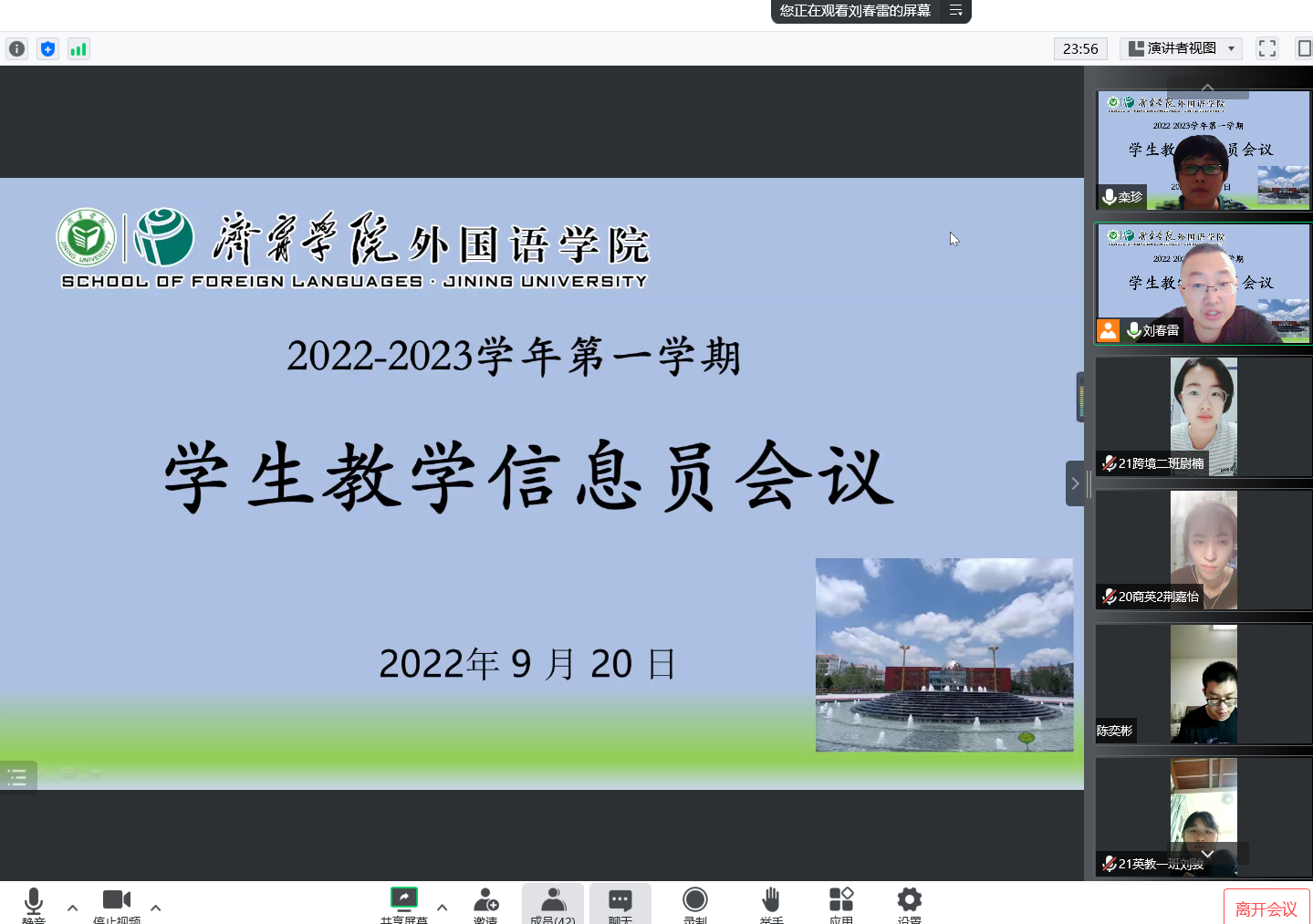 9月20日晚,mksport登录入口通过腾讯会议在云端召开学生教学信息员会议。会议由教学秘书栾珍、刘春雷老师主持,2019-2021级学生教学信息员以及2022级新生各班班助同学参加此次会议。