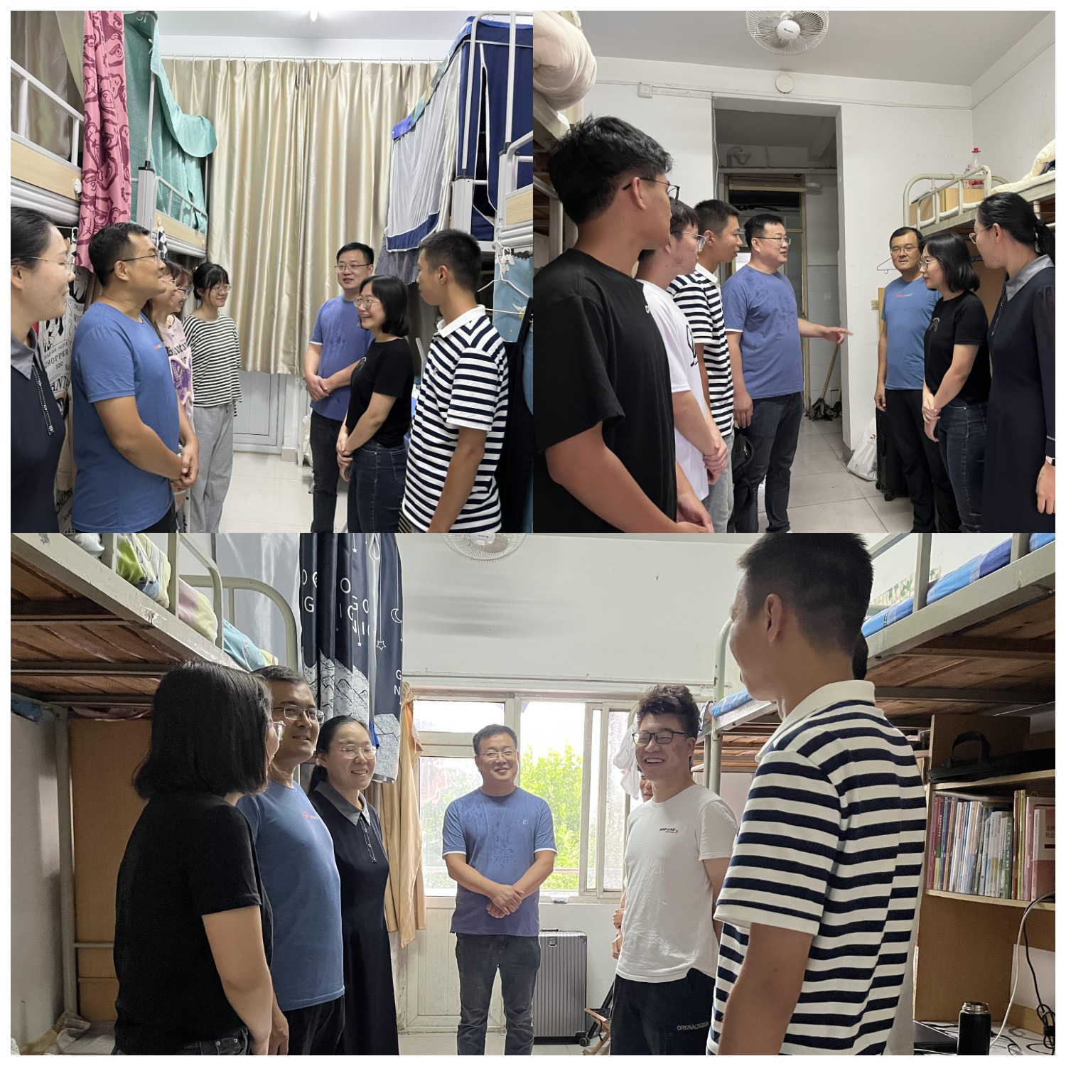 828日,党委副书记许言强、全体辅导员深入学生宿舍,与同学们亲切交流,了解同学们假期生活、学习情况和返校后的思想动态,并与学生就学业发展、未来规划等进行深入交流,希望大家加强自我管理,落实安全用电等各项管理规定,养成健康文明、积极向上的生活习惯,充分利用课余时间开展各种有益身心健康的文体活动,全面提升自身素质。随后仔细检查了宿舍安全、卫生等方面存在的问题,要求落实“每日通风”等疫情防控制度,保持宿舍干净整洁,营造良好的学习生活环境。